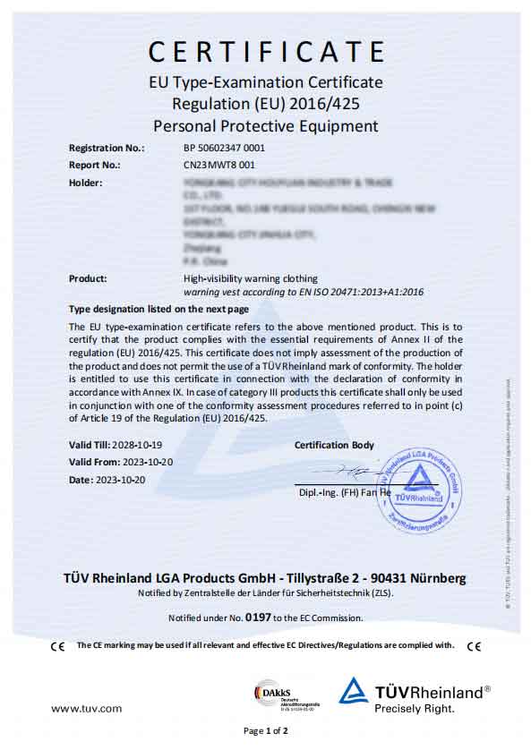 F2: Entsprechen Ihre Sicherheitswarnwesten den Sicherheitsstandards der EU und der USA?