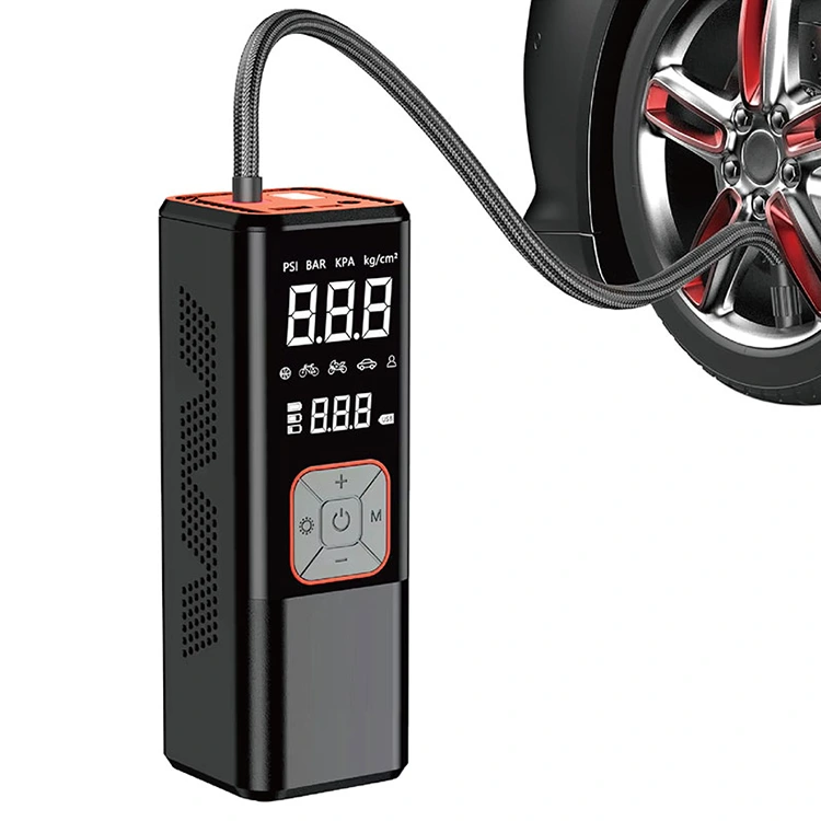 Sichtbarkeit: Der tragbare Luftkompressor verfügt über ein integriertes LED-Licht an der Oberseite, das für Beleuchtung bei Nacht oder in Notfällen sorgt.
