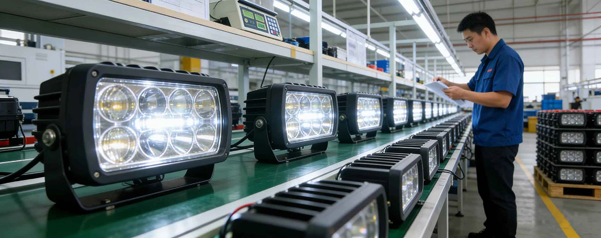 Bei Far East Manufacturing steht Qualität an erster Stelle. Jede Produktionscharge wird strengen Tests unterzogen, einschließlich der Überprüfung der Wasserdichtigkeits-IP-Einstufung, Vibrationsfestigkeitstests und Prüfungen der Lichtstromstabilität. Jeder LED-Arbeitsscheinwerfer wird vor dem internationalen Versand auf Maßhaltigkeit und Materialkonsistenz geprüft.