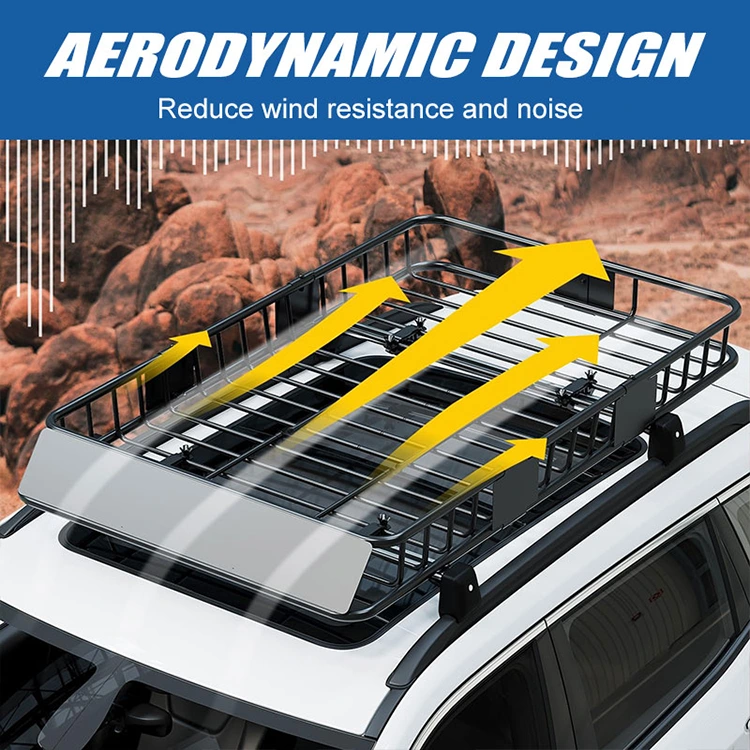 Das aerodynamische Design des Fancy Roof Rack Carrier Basket reduziert den Windwiderstand und Geräusche während der Fahrt. Das Design ermöglicht eine ungehinderte Luftströmung über das Rack und reduziert so den Luftwiderstand und den Kraftstoffverbrauch. Es ist für das Fahren auf der Autobahn geeignet; Es bietet eine ruhigere und sanftere Fahrt, selbst bei hohen Geschwindigkeiten.